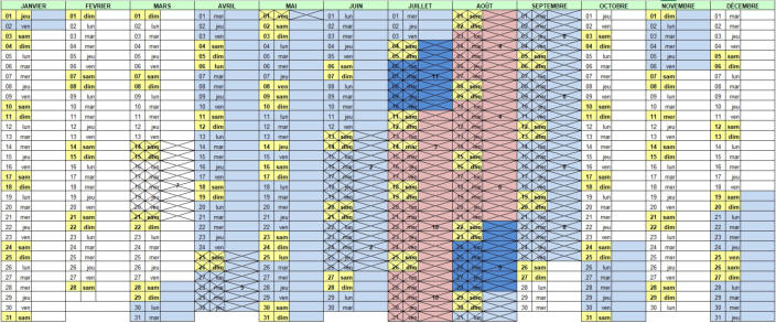 Calendrier de réservations 2026